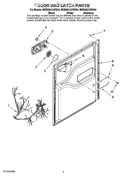Parts for Maytag MDB5651AWS40: 03 - Door And Latch Parts