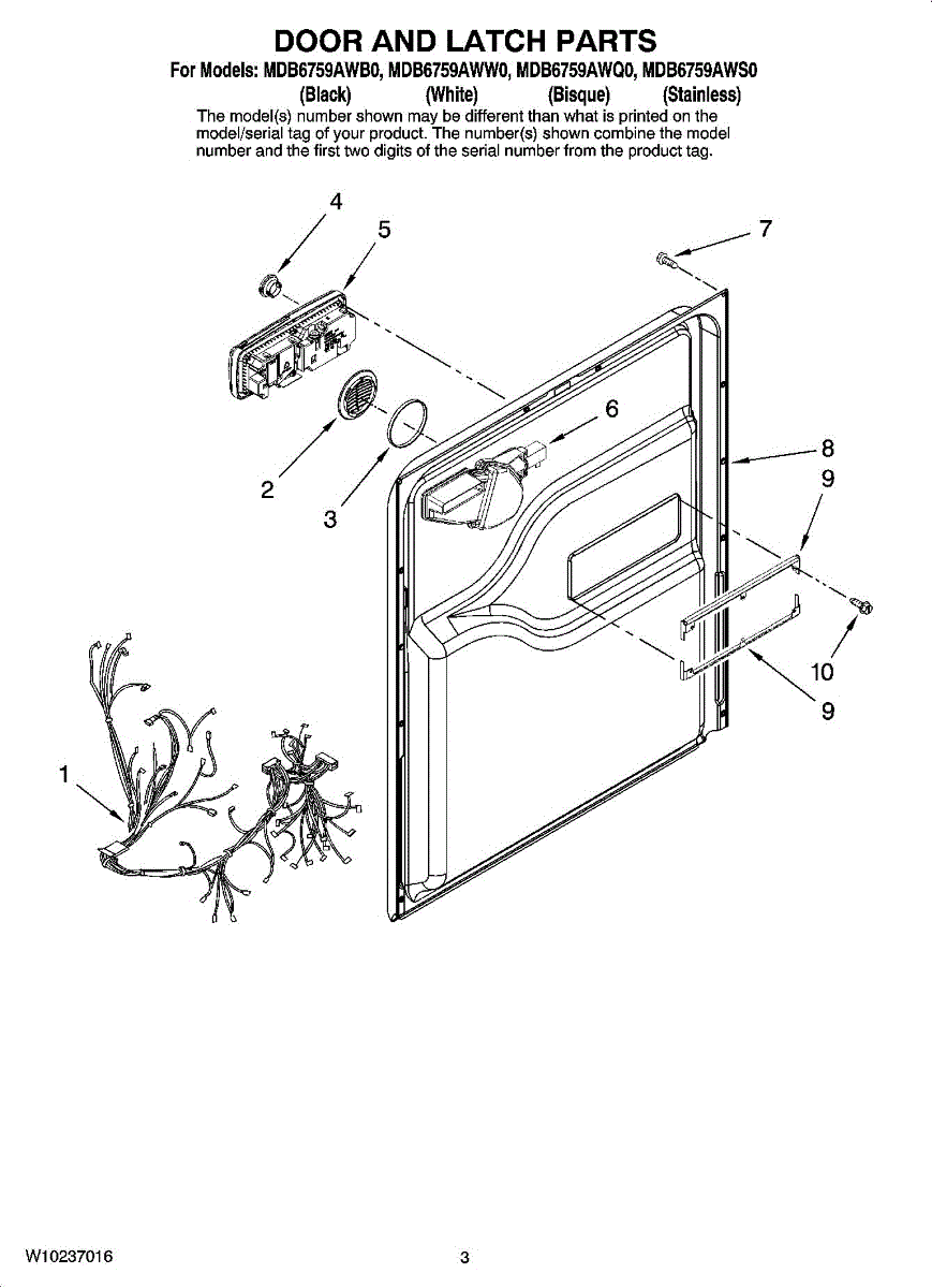 Parts for Maytag MDB6759AWW0: 03 - Door And Latch Parts