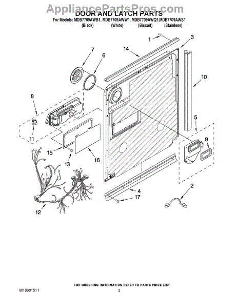 Parts for Maytag MDB7709AWW1: 03 - Door And Latch Parts