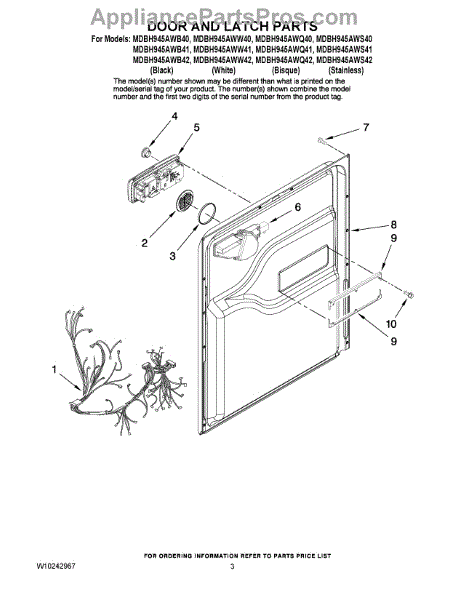 Parts for Maytag MDBH945AWQ41: 03 - Door And Latch Parts