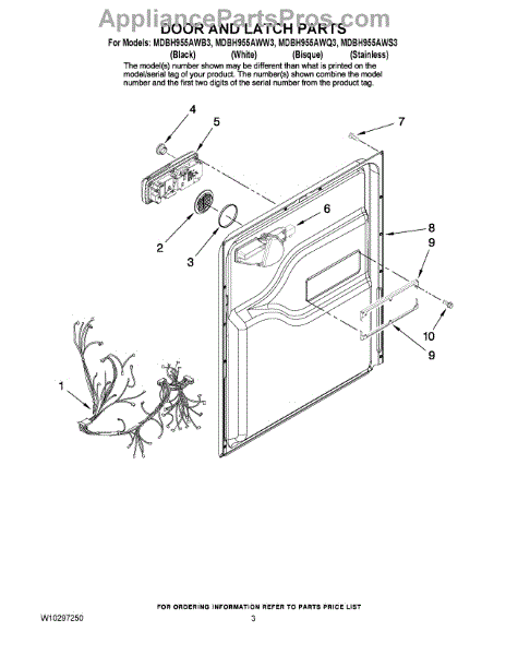 Parts for Maytag MDBH955AWW3: 03 - Door And Latch Parts