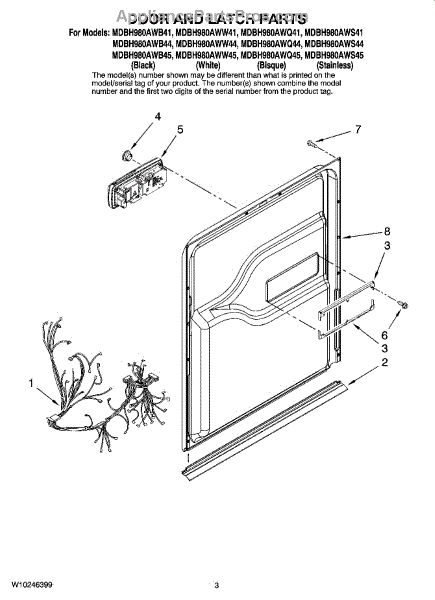 Parts for Maytag MDBH980AWW41: 03 - Door And Latch Parts
