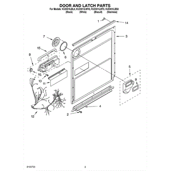 Parts for Kitchenaid KUDI01ILSS0: 03 - Door And Latch Parts