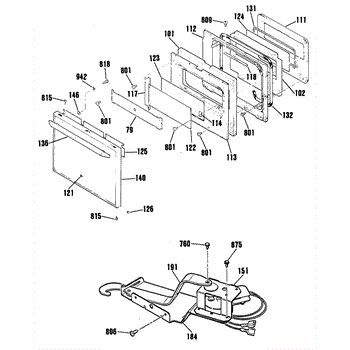 This oven door latch assembly secures the door during the self-clean cycle and reports lock status to the control. Replace a worn or failed latch to restore safe locking and reliable self-clean operation.