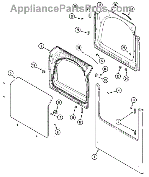 This door seal fits around the dryer door opening to keep heat and moisture inside the drum. Replacing a worn seal restores airflow, improves drying performance, and helps prevent lint and warm air from escaping around the door.