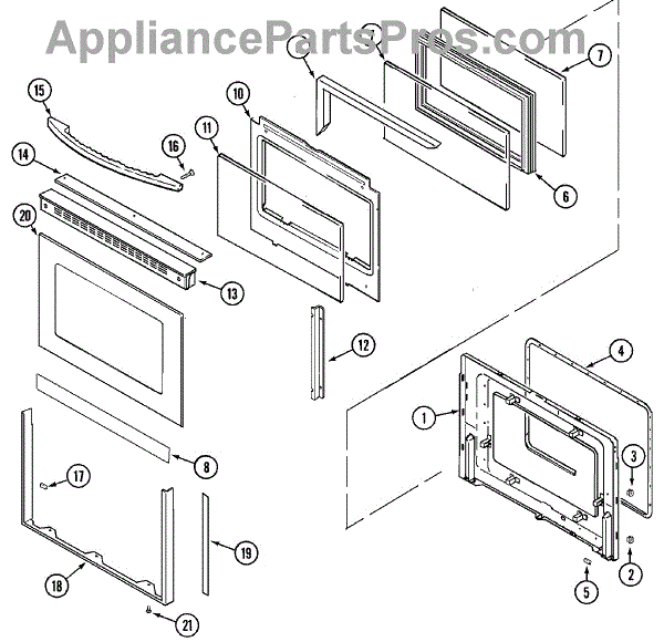 The Oven Door Panel Screw is an OEM replacement part for Whirlpool ovens and ranges. It is a component used to fasten the outer panel to the interior metal door frame. Causes of a bad oven door panel screw can include normal wear from repeated opening and closing of the door, damage such as stripped threads from overtightening, or corrosion over time inhibiting its fastening function. Symptoms of a bad oven door panel screw include: