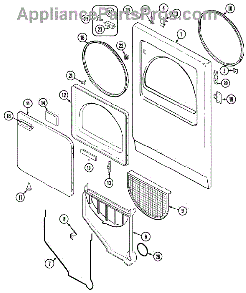 The Door Catch Kit is an OEM part for Whirlpool dryers. It includes the door catch and the necessary mounting hardware to secure it in place. This kit ensures the dryer door remains securely closed during operation, preventing heat loss and ensuring the appliance functions efficiently.