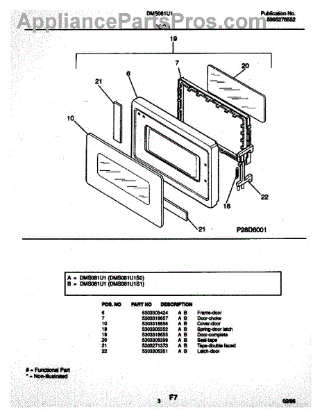 Parts for Frigidaire DMS081U1S0: 03 - Door Parts