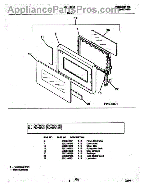 Parts for Frigidaire DMT113U1B1: 03 - Door Parts