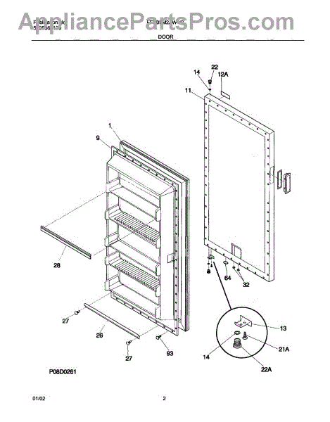 This door gasket seals the perimeter of the refrigerator or freezer door to maintain an airtight closure. Replacing a worn gasket restores a proper seal, helps stabilize temperatures, reduces frost and condensation, and supports efficient operation. What it does: