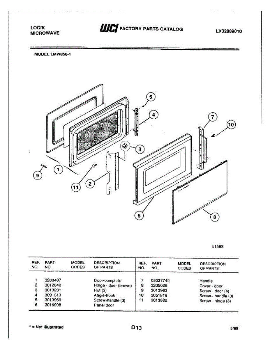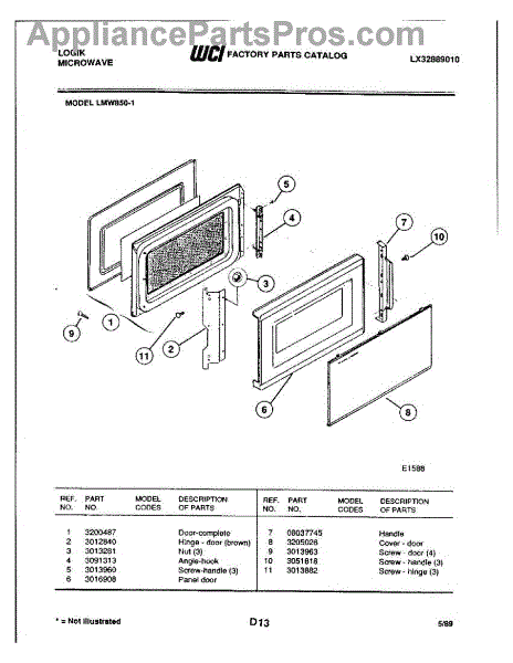 Parts for Frigidaire LMW850-1: 03 - Door Parts