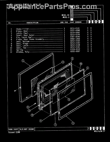 Parts for Magic Chef ME5E-3: 03 - Door Parts