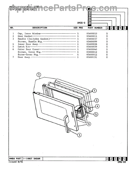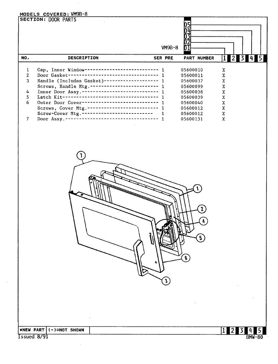 Parts for Magic Chef VM9B-8: 03 - Door Parts