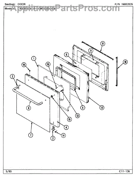 This spacer fits between the inner and outer oven door glass panels to help maintain the correct gap and alignment for safe operation. It replaces a missing or damaged spacer to restore proper door assembly and appearance. What it does: