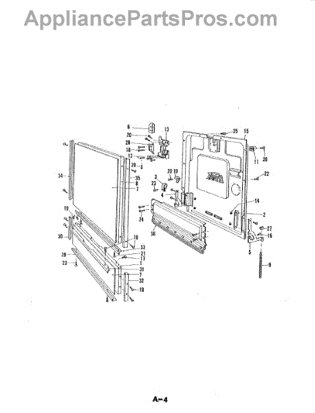 This factory screw secures appliance components to their mounting points. Replace missing, worn, or stripped hardware to restore a tight fit, proper alignment, and quieter operation across the affected assembly.