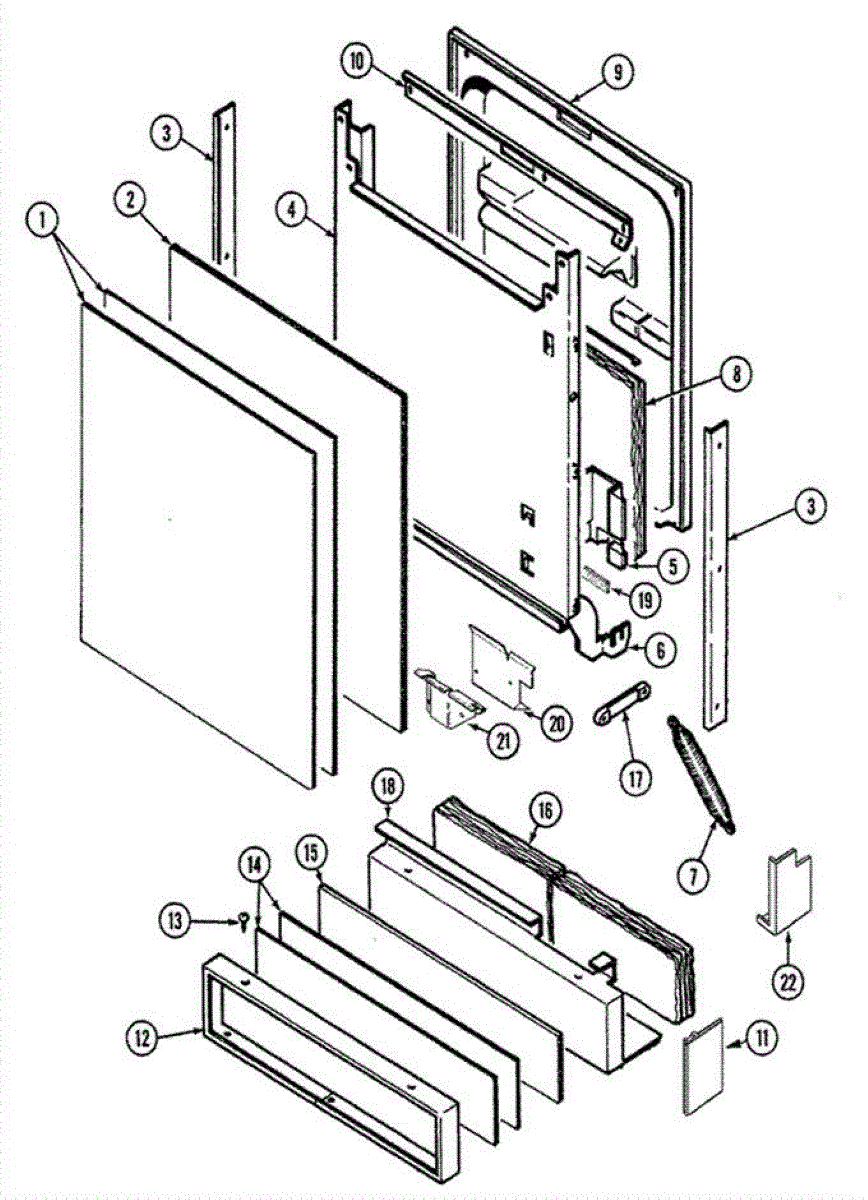 Insulates dishwasher door cavity to reduce noise and improve energy efficiency. Replace if torn, compressed, or missing. Verify fit with your model number.