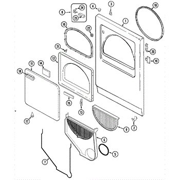 The Door Catch Kit is an OEM part for Whirlpool dryers. It includes the door catch and the necessary mounting hardware to secure it in place. This kit ensures the dryer door remains securely closed during operation, preventing heat loss and ensuring the appliance functions efficiently.