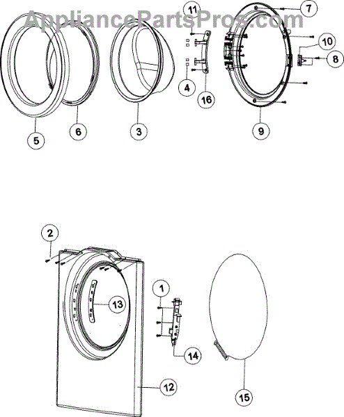 This door lever actuates the latch/switch when the door closes. If it's worn or broken, the appliance may not sense a closed door and won't start. Replacing it restores proper door engagement and safe, reliable operation. What it does: