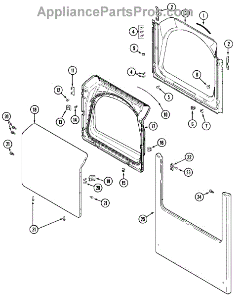 This door seal fits around the dryer door opening to keep heat and moisture inside the drum. Replacing a worn seal restores airflow, improves drying performance, and helps prevent lint and warm air from escaping around the door.