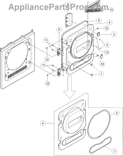 This dryer lint filter, also called a lint screen, captures lint and debris from the exhaust air stream. Replacing a damaged or missing screen helps restore proper airflow, improve drying consistency, and protect the blower and vent.