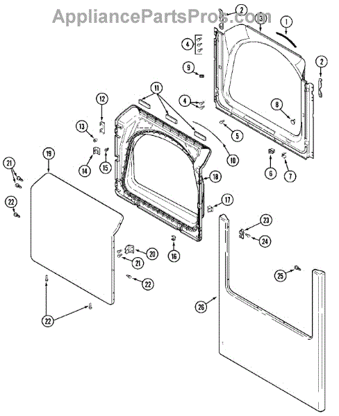 This door seal fits around the dryer door opening to keep heat and moisture inside the drum. Replacing a worn seal restores airflow, improves drying performance, and helps prevent lint and warm air from escaping around the door.