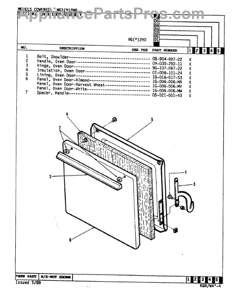 Parts for Norge NGW2HK0: 03 - Door Parts