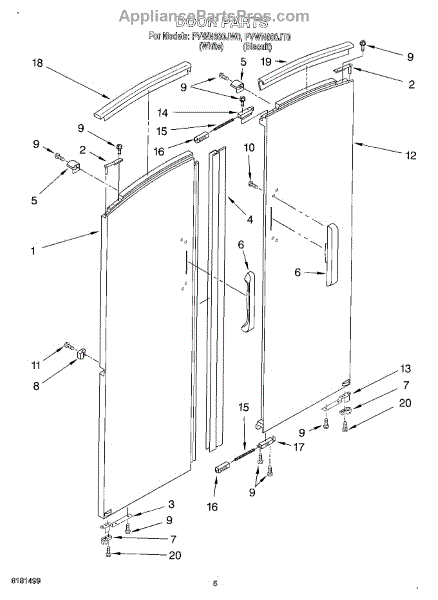 Parts for Whirlpool PVWN600JT0: 03 - Door Parts