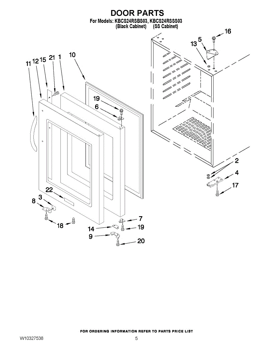 Parts for Kitchenaid KBCS24RSBS03: 03 - Door Parts