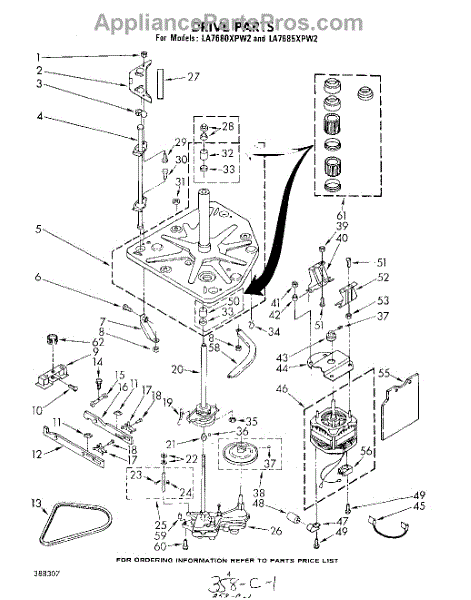 Drive belt transfers motor power to spin the washer drum. Replace if you hear squealing, slipping, or complete spin failure. Verify fit with your model.