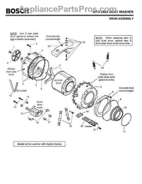 The Drum Drive Motor is an OEM part for Bosch washing machines. This motor powers the drive system that rotates the wash drum and tumbles clothes during cycles.