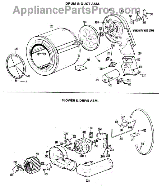 Parts for Ge DLL1550BEL: 03 - Drum & Duct Asm. Parts