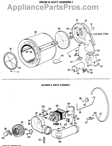 Parts for Ge DLL2450RBL: 03 - Drum & Duct Assembly Parts