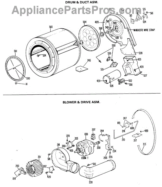Parts for Ge DLL6850BCL: 03 - Drum & Duct Assm. Parts