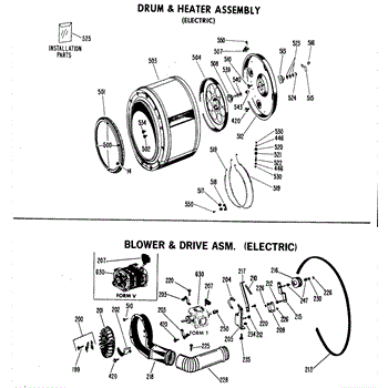 This dryer heating element kit is made by GE and includes two coils and hardware. Rated 240 volts.