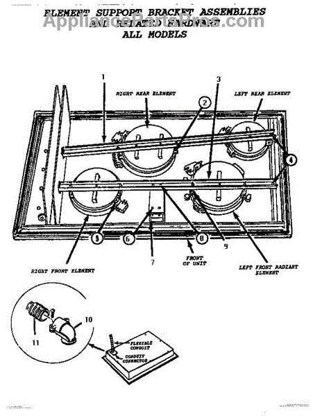 Parts for Thermador CR36W: 03 - Element Support Bracket Parts