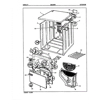 This cabinet top clip is a small plastic retainer that secures the appliance's top/cabinet to the chassis, keeping the cabinet aligned and preventing movement or rattling. It restores a flush fit between the cabinet and body. What it does: