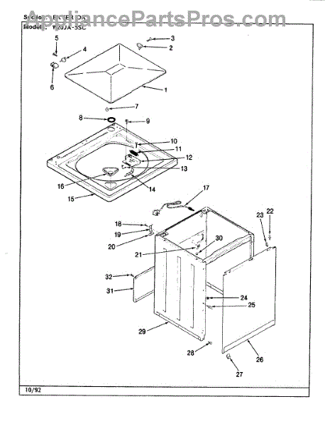 Parts for Magic Chef W20JA5SC: 03 - Exterior (Rev. A-D) Parts