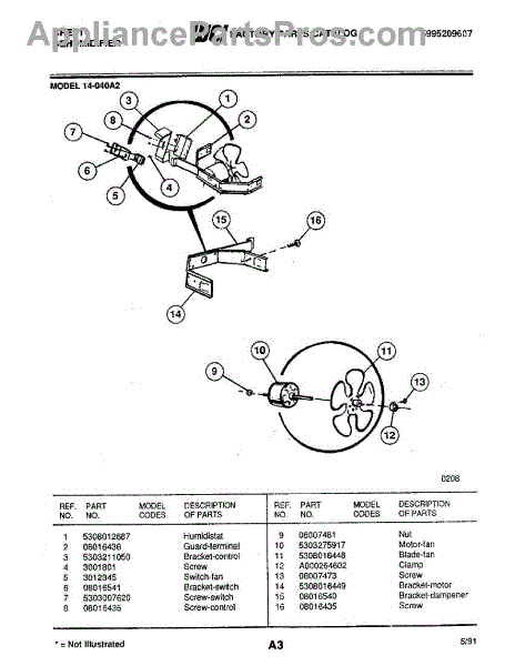Parts for Frigidaire 14-040A2: 03 - Fan Parts