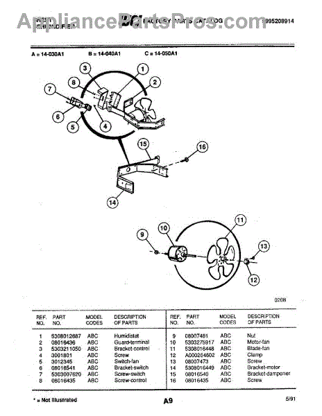 Parts for Frigidaire 14-050A1: 03 - Fan Parts