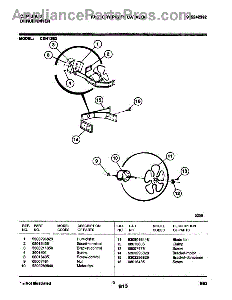 Parts for Frigidaire CDH13E2: 03 - Fan Parts