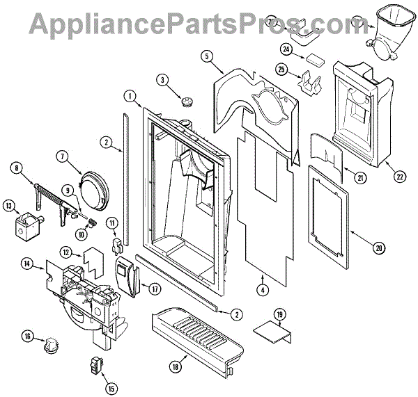 This ice door spring restores the closing tension on the dispenser chute door. Replacing a fatigued spring helps the flap seal properly after dispensing, reducing warm-air leaks that cause frost buildup and ice clumping around the chute. What it does: