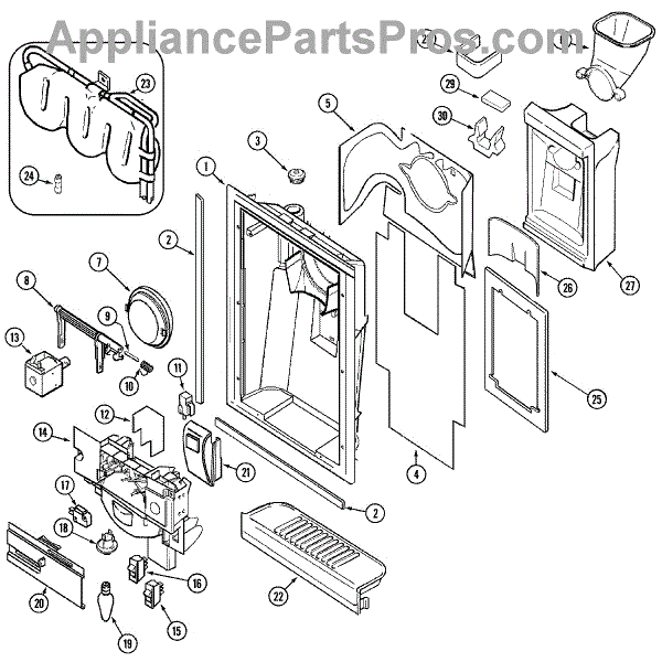 Causes of a bad ice door fountain kit can include wear and tear over time, buildup of ice or debris obstructing the door mechanism, or damage to the components from frequent use.