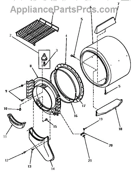 Cushions and seals the dryer drum to reduce noise and vibration. Replace when worn or torn to prevent scraping sounds. Confirm fit with your model.