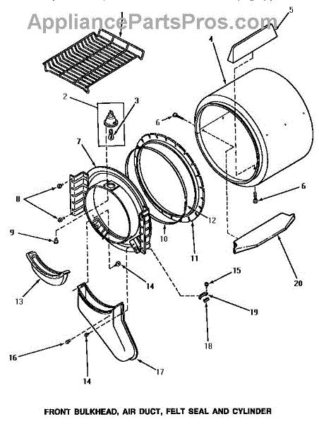 Parts for Amana NG7319: 03 - Fr Blkhd, Air Duct, Felt Seal & Cylinder Parts