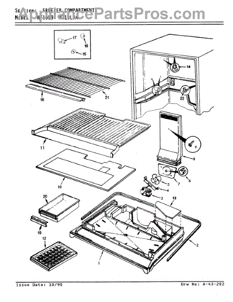 Parts for Admiral NT19L9A / AA62D: 03 - Freezer Compartment Parts