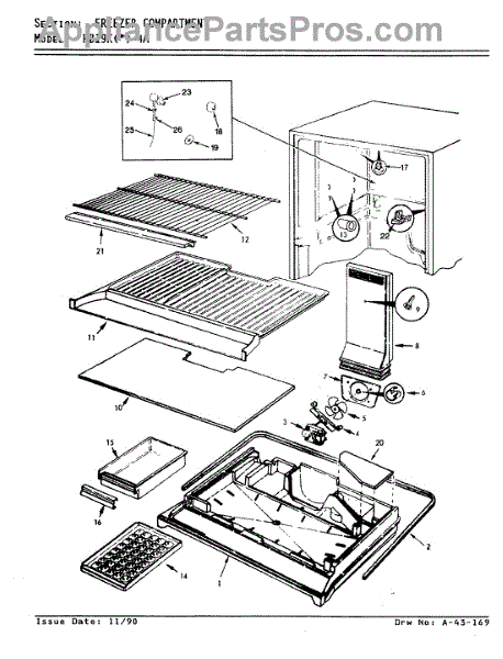 Parts for Magic Chef RB19KA-4A / AG64D: 03 - Freezer Compartment Parts