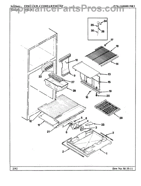 This factory screw secures appliance components to their mounting points. Replace missing, worn, or stripped hardware to restore a tight fit, proper alignment, and quieter operation across the affected assembly.