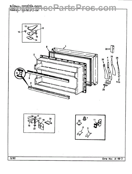 Parts for Magic Chef RB19KA-4A / CG65A: 03 - Freezer Door Parts