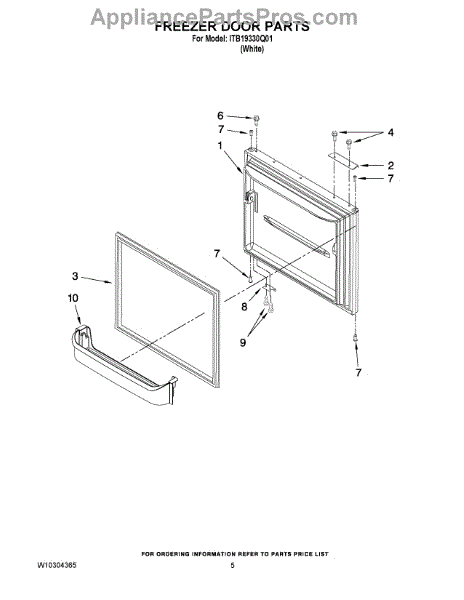 Parts for Whirlpool ITB19330Q01: 03 - Freezer Door Parts