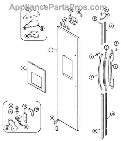 Mounting screw secures panels, brackets, and trim on refrigerators and washers. Replace when fasteners are missing, loose, stripped, or damaged.